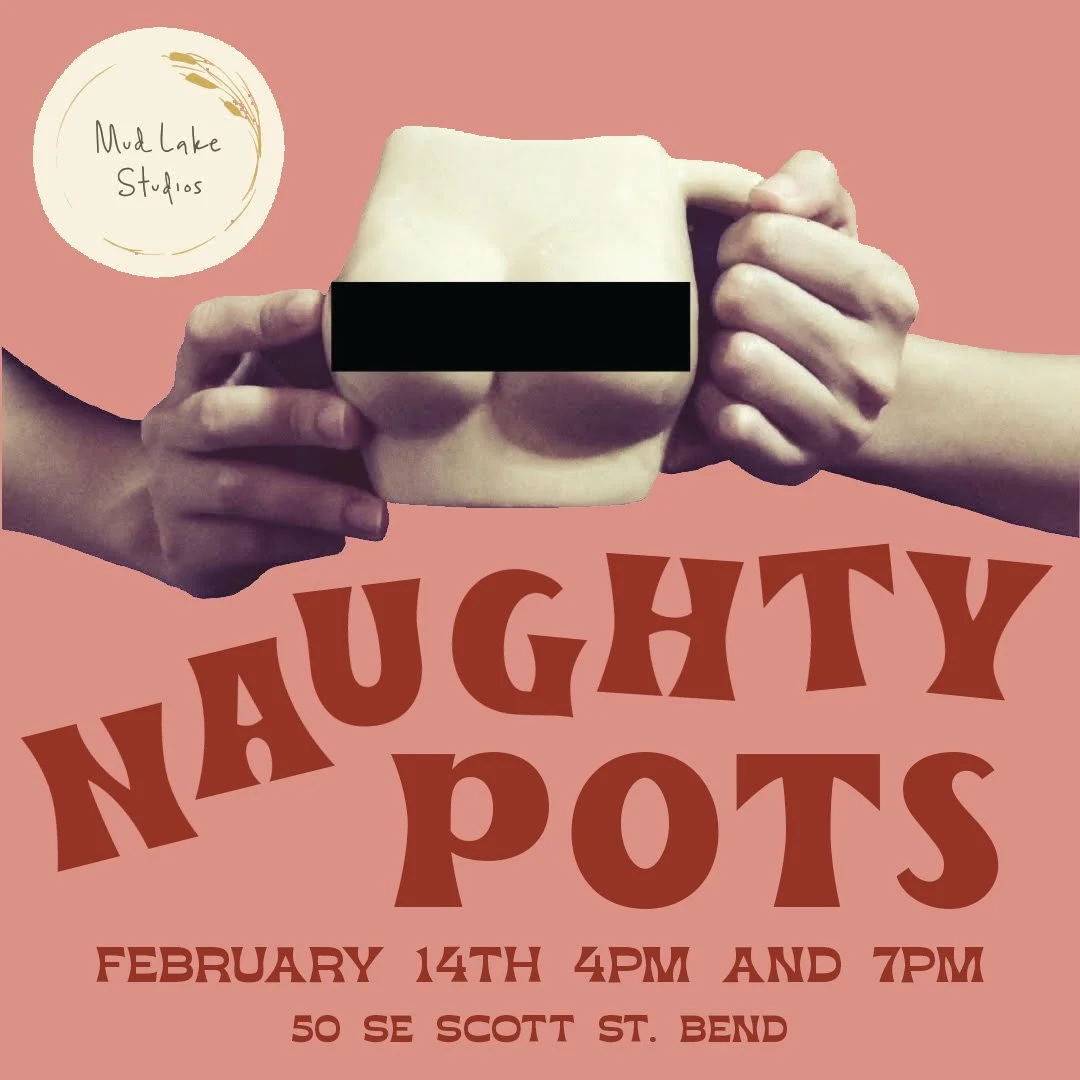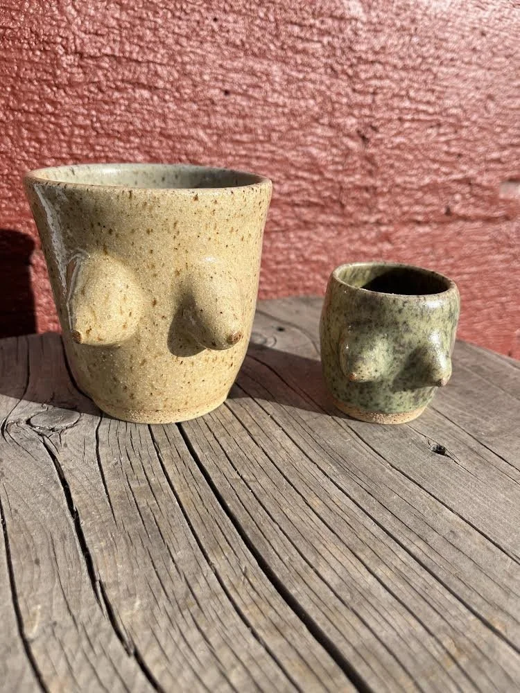 Premise breakdown of class: Participants will be given the tools, slips, and extra clay to decorate a moist cup form over 2 hours. Slips are used like paints would be. Various carving tools can be used to create designs, drawings, and textures. There will also be some extra clay for body parts to be added. There will be sample cups displayed and short demos of how to carve, paint, add, and form. After the session, Michelle will fire and glaze the Naughty Cups. Pick-up will be about 10 days after the session.
